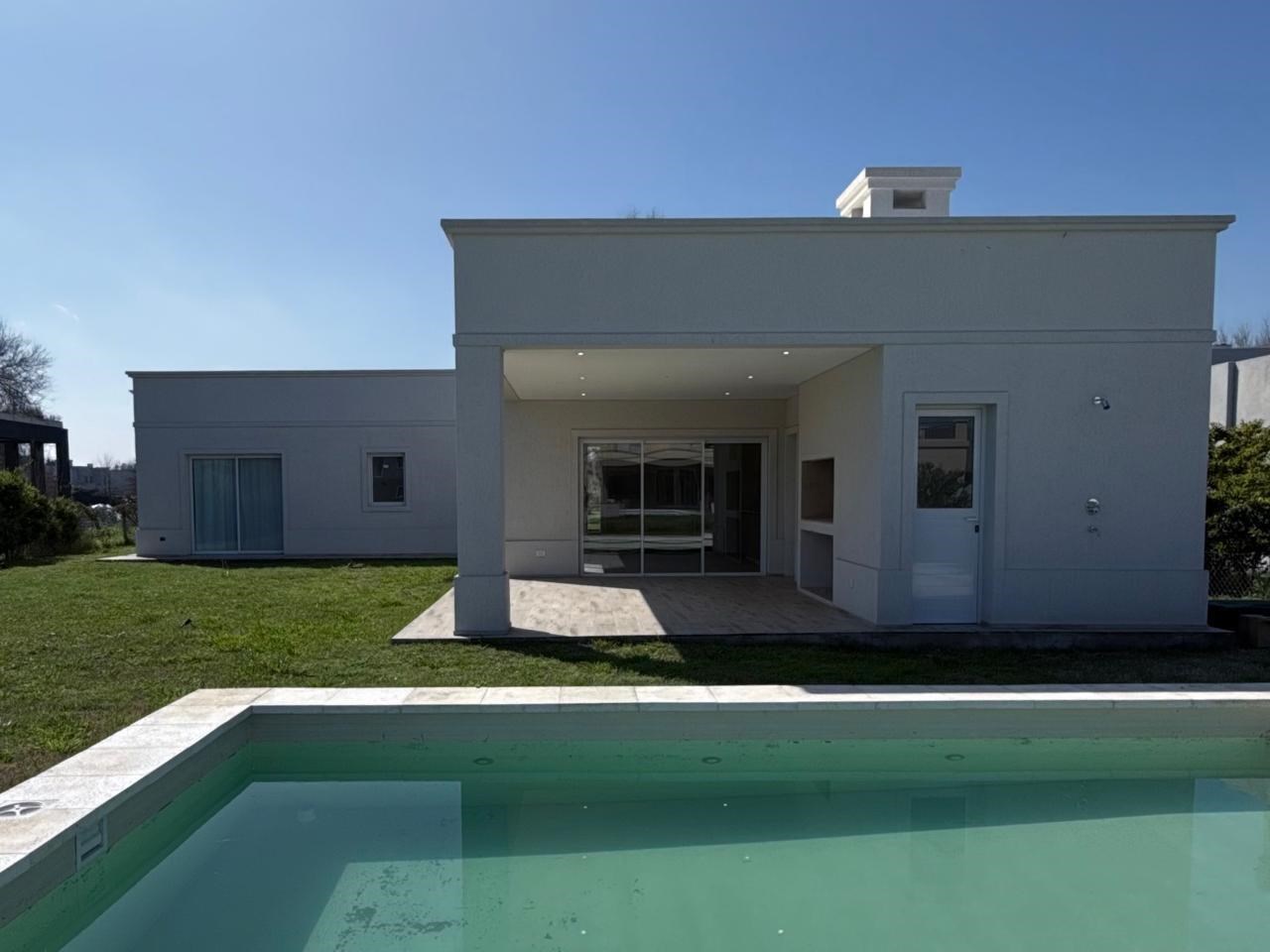 Venta casa de 4 ambientes en el Atardecer, Haras Santa Maria, Escobar de muy buena calidad de construccion, la vivienda se desarrolla en 1 planta. Hall de distribucion, suite con vestidor y baño completo, 3 dormitorios asistido por un baño, toillete, lavadero, cocina comedor con muebles bajo mesada de exelente calidad y diseño en el exterior amplia galeria con jardin y piscina. Detalles: calefaccion por loza radiante, aire acondicionado en todos los ambientes, ventanas doble vidrio, cantidad maxima de 6 personas. Bomba Presurizadora.Bomba sumergible para piscina Rotopump. Equipamiento de piscina Vulcano. Ablandador de agua Vulcano con mantenimiento a cargo del Locador., Caldera Baxi. Extractor de cocina. Timer digital para luces de jardín. Anafe eléctrico Ultracomb. Horno electrico empotrado Florencia. Bacha de cocina Johnson. Bacha de lavadero Mi Pileta. Gritería baños y cocina FV Arizona. Sanitarios Piazza línea Amalfi. 3 Aires Acondicionado Split de 2500 Frigorías Comfee. 1 Aire acondicionado Split 4600 Frigorías Comfee. Mamparas de Vidrio. Cortinas Blackout. Parrilla con equipamiento. Ademas,Cuenta con losa radiante sectorizada en todos los ambientes. Spots para Iluminación colocados en todos los ambientes Haras Santa Maria: Es un barrio privado que se encuentra en el km 54.5 de la ruta 9 Ramal Escobar. El barrio es ideal para familias ya que dentro del mismo se encuentran: 2 club house, plaza de juegos, piletas, pista de equitación, golf, gym y diversas actividades recreativas para adultos y niños. Esta conformado por 12 comunidades. Dentro del barrio se encuentra el colegio bilingüe St. Luke’s College. Hectáreas totales: 354, Cantidad de lotes: 1524. No dudes en consultarnos ! La presente publicación describe las características esenciales del inmueble, debiéndose consultar al corredor público inmobiliario responsable de la operación por la eventual actualización de las medidas, descripciones arquitectónicas y funcionales, valores de expensas, servicios, impuestos, precios y demás información, cuyos valores son aproximados.
